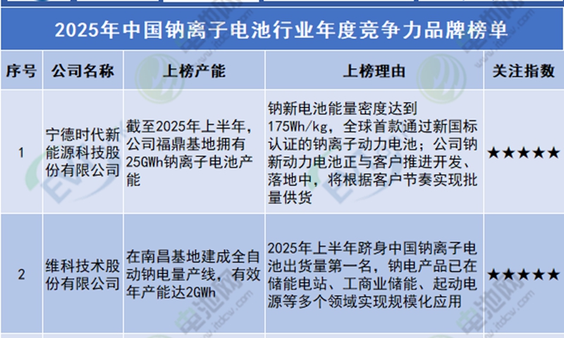 實力認(rèn)證 | 維科技術(shù)榮膺鈉電競爭力品牌榜單No.2,僅次于寧德時代
