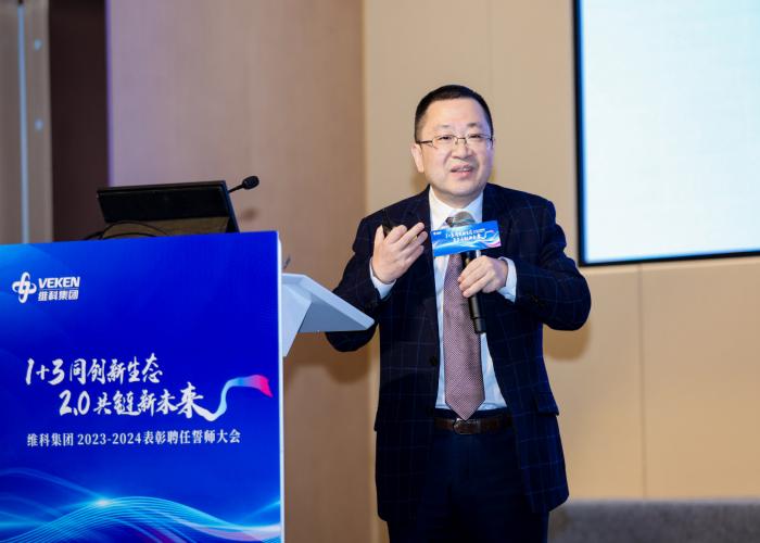 戰(zhàn)略是連接“組織現(xiàn)狀”與“未來目標”的橋梁,是集團發(fā)展規(guī)劃與資源配置的行動綱領(lǐng)。會上,集團董事長何董作《2024年維科集團綠色能源科技戰(zhàn)略生態(tài)》宣貫。何董從戰(zhàn)機、能力、團隊,聚焦新能源、突破新項目,構(gòu)建綠色能源戰(zhàn)略生態(tài),人成事、事成人等方面對集團綠色能源科技戰(zhàn)略生態(tài)進行了詳細闡述,指出1+3責任人及項目團隊肩負著八大集團級重點項目的重任,這是對執(zhí)行力的考驗,更是集團戰(zhàn)略落地的決定性一步。在推動項目的過程中,何董期待更多的2.0、3.0團隊能夠如雨后春筍般涌現(xiàn)。這些項目的成功將促成集團戰(zhàn)略生態(tài)的形成,打造一個充滿活力、協(xié)同發(fā)展的生態(tài)系統(tǒng),讓集團的各項業(yè)務(wù)在這個生態(tài)中相互支持、共同成長。