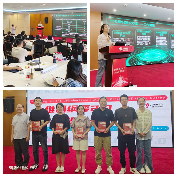 7月6日晚,五期班學(xué)員在班主任徐煦的帶領(lǐng)下學(xué)習(xí)了集團(tuán)“1+3綠色能源科技生態(tài)戰(zhàn)略協(xié)同成果首次發(fā)布會”的相關(guān)內(nèi)容,包括生態(tài)組織建設(shè)方案、首批生態(tài)協(xié)同獎項(xiàng)目、生態(tài)平臺發(fā)布指引、各產(chǎn)業(yè)生態(tài)懸賞清單發(fā)布等。之后與會學(xué)員分成六組開展了《維科綱要2.0》知識競賽活動。本次競賽題型包括單選題、多選題、填空題、判斷題、簡答題、論述題等,經(jīng)過現(xiàn)場生動活潑、緊張有趣的競答,大家加深了對維科文化和《維科綱要2.0》的理解,最終優(yōu)勝小組贏得胡賽雄老師簽名版新書——《管理的力量》。
