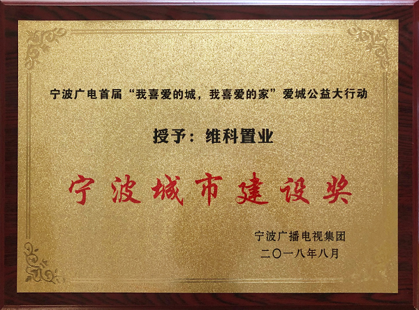 2018年8月16日,由寧波廣播電視集團(tuán)主辦的“愛城公益盛典”在寧波大劇院隆重舉行。作為寧波新時(shí)代的建設(shè)者,寧波維科置業(yè)在頒獎(jiǎng)盛典中,被授予“寧波城市建設(shè)獎(jiǎng)”。