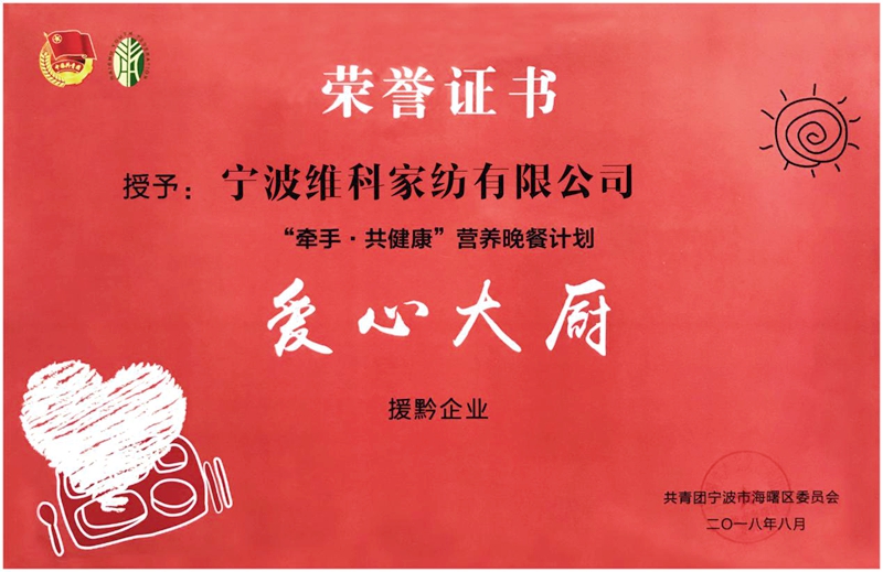 愛是這個(gè)世界上最溫暖的字眼,一家有愛的企業(yè),才能賦予產(chǎn)品愛的力量。2018年正值維科家紡品牌成立20周年,公司在發(fā)展自身業(yè)務(wù)的同時(shí),也積極投身于社會(huì)公益活動(dòng),希望以一個(gè)企業(yè)的力量弘揚(yáng)社會(huì)責(zé)任感,樹立企業(yè)積極向上的新形象。