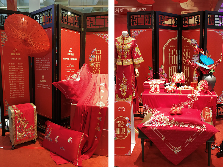 首次亮相婚博會的維科家紡主題婚慶館內以《錦繡妍妝》為主題,為新人傳遞“維科紅X 幸福家”的幸福理念,精美的陳列與華麗的婚慶床品相結合,呈現(xiàn)傳統(tǒng)婚禮的濃濃中國風味,迎來了現(xiàn)場眾多新人們的咨詢與圍觀,短短兩天時間,便收獲了數(shù)十位意向客戶。
