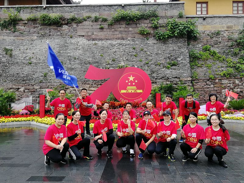 活動在莊嚴(yán)的升國旗儀式中拉開帷幕,秋風(fēng)細(xì)雨阻擋不了隊(duì)員們的飽滿熱情,在團(tuán)隊(duì)風(fēng)采展示和熱身運(yùn)動后,各代表隊(duì)高擎維科旗,按照設(shè)定的規(guī)劃路線,用腳步跑出一張張“愛國”主題的路線,用團(tuán)隊(duì)合影記錄這一刻美好瞬間。在維科人獨(dú)具匠心的創(chuàng)意下,“70”“五星紅旗”“中國”等元素活靈活現(xiàn)地呈現(xiàn)開來,在城市的大街小巷,努力奔跑著的維科團(tuán)隊(duì),如同一群“追夢人”,成為了一道亮麗的風(fēng)景線。每一位隊(duì)員都收獲了專屬定制的活動文化衫和紀(jì)念獎?wù)?,倍感榮耀!